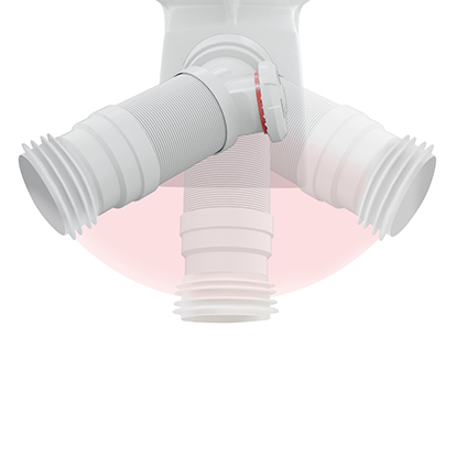 Dzięki zintegrowanemu SYSTEMOWI AIR membrana automatycznie otwiera się w przypadku podciśnienia, umożliwiając przedostanie się powietrza do sieci. Zapewnia to płynny, cichy odpływ bez cofania się zapachu.